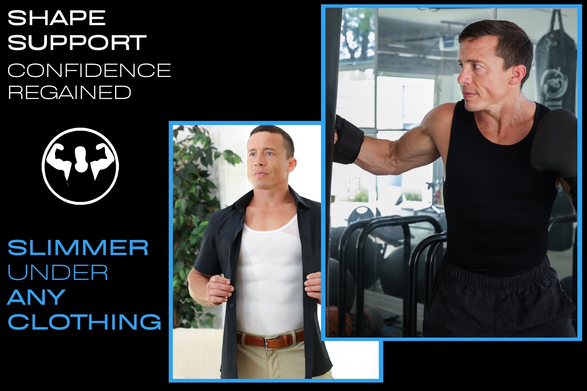 male shapewear before and after Esteeem Apparel compression shirts for men