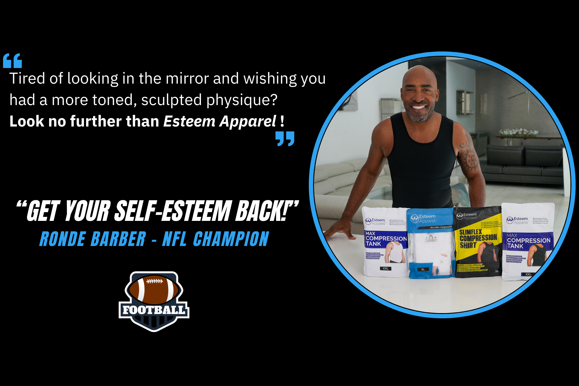 At Esteem Apparel, our undershirts are designed with innovative features for maximum comfort and effectiveness. They provide an ultra-snug fit without compromising comfort, are invisible under clothing, and maintain their shape and elasticity throughout the day. Additionally, NFL Superbowl Champion Ronde Barber endorses them, highlighting their quality and effectiveness.