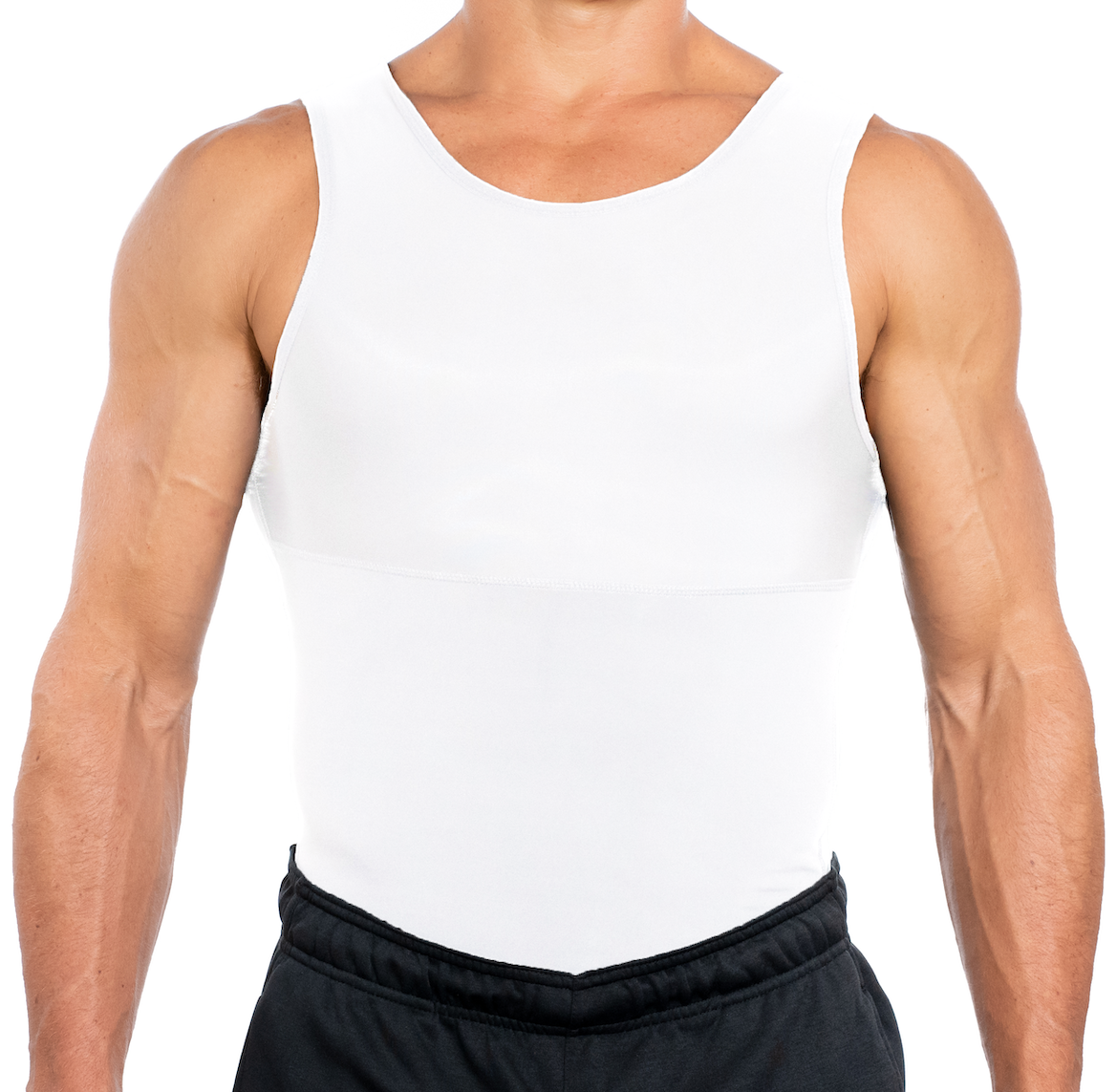 Our body shaper for men are made from high-quality materials, with designs perfected in the USA. They're made to provide a flat, slimming effect, while remaining hidden and unnoticeable under any kind of clothing. Our shirts also offer excellent gynecomastia chest compression for those seeking an instantly slimming chest.