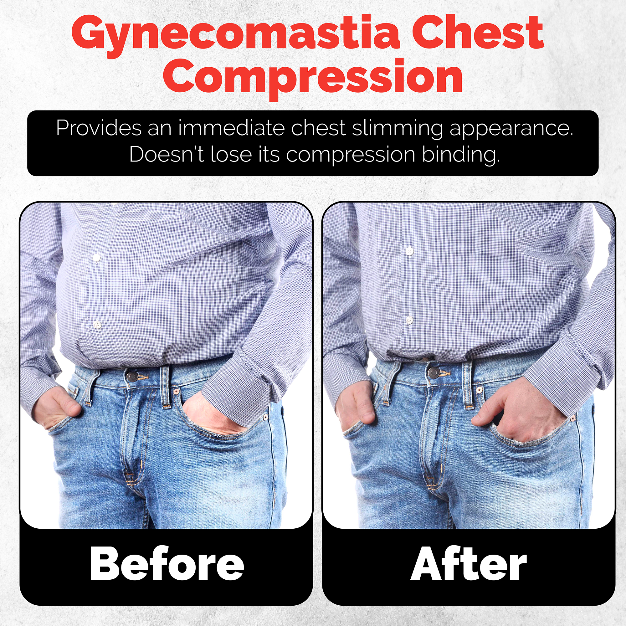 Our shirts are designed to hide gynecomastia by applying gentle compression to the chest. This compression smooths out body contours and provides an immediate slimming effect, making the wearer appear more toned and fit under any clothing.